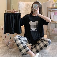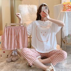 11. 또온나 여성 곰돌이 잠옷 세트 반팔+반바지+긴바지 편하고 귀여운 데일리 홈웨어